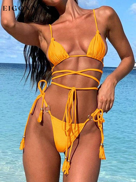Frynser Trim Knyttet Halter Neck Ryggløs One-Piece Badedrakt