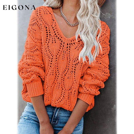 Dame Hekle Hollow Out strikket V-hals genser