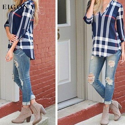 Basic løsrutet langermet skjorte for kvinner