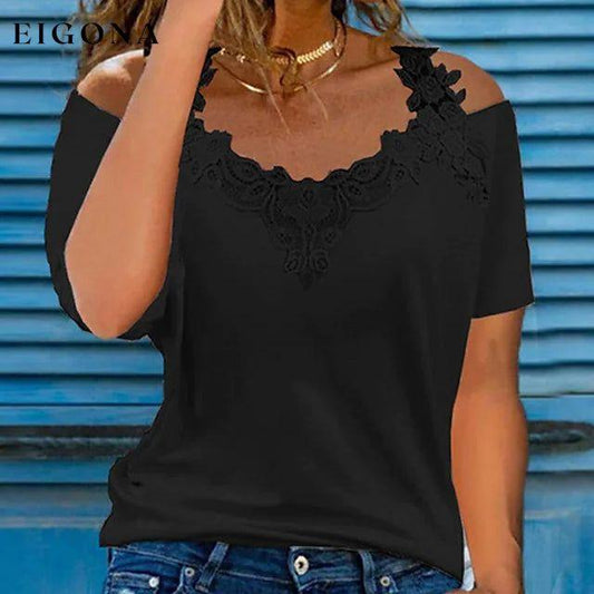T-skjorte for kvinner med kortermet knapp med blonder