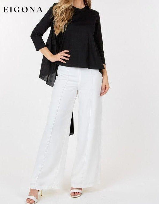 Kontrast Ruffle Quarter Sleeve Høy Lav Casual Topp