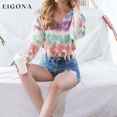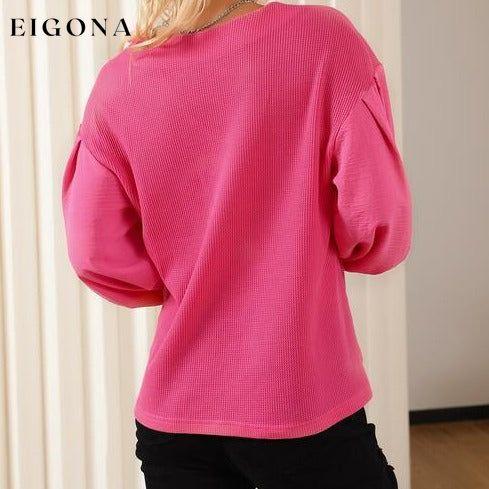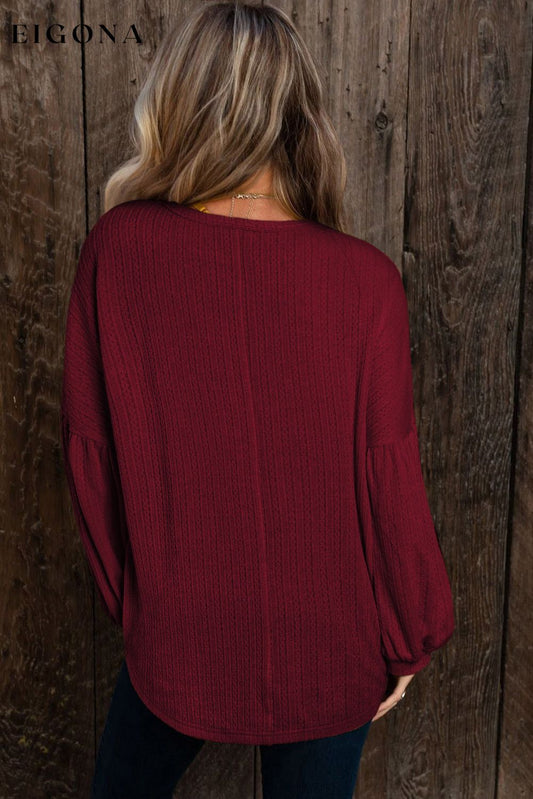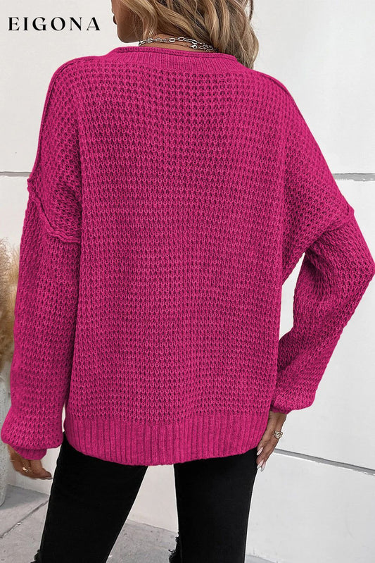Rose Fiery Red Pointelle Knit Button V-hals Drop Shoulder Langermet skjorte, genser