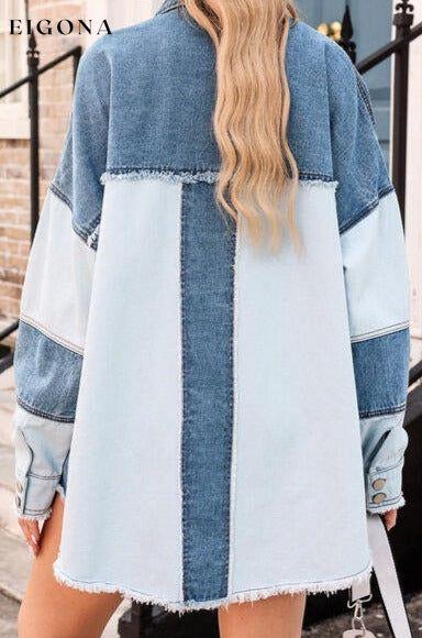 Raw Hem Button Up Color Block denimjakke med brystlommer