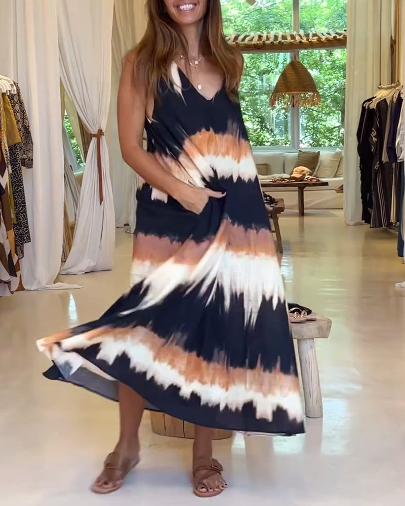 Lässiges ärmelloses Kleid mit V-Ausschnitt und Print
