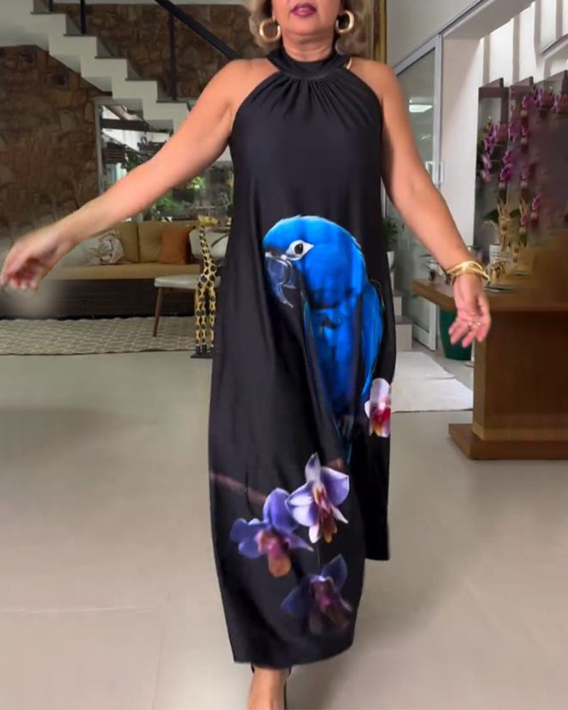 Schulterfreies, bedrucktes, lockeres Etuikleid