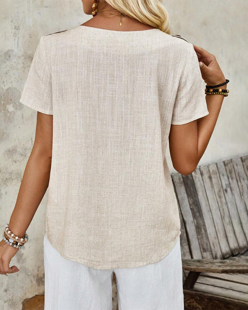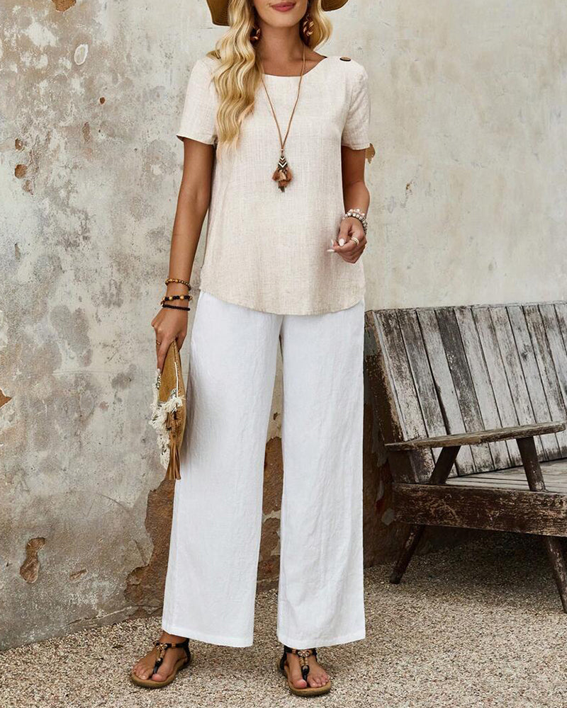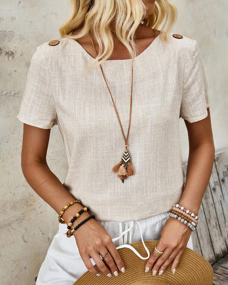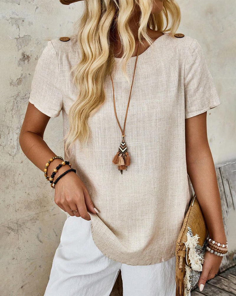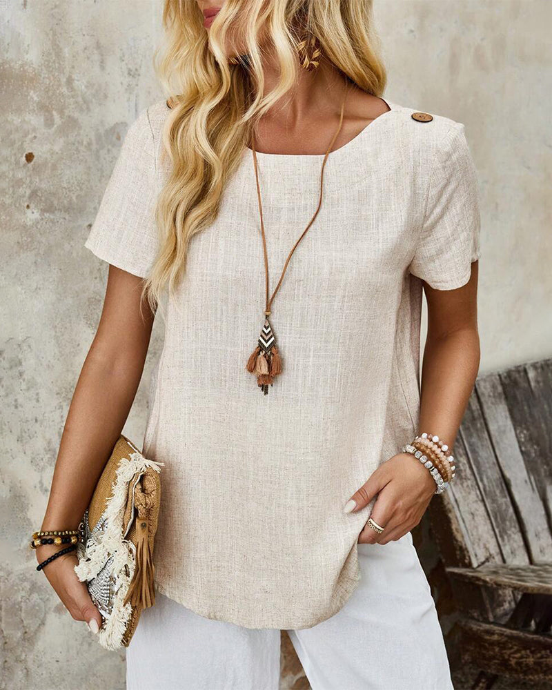 Kurzarm-T-Shirt aus Baumwolle und Leinen mit Rundhalsausschnitt