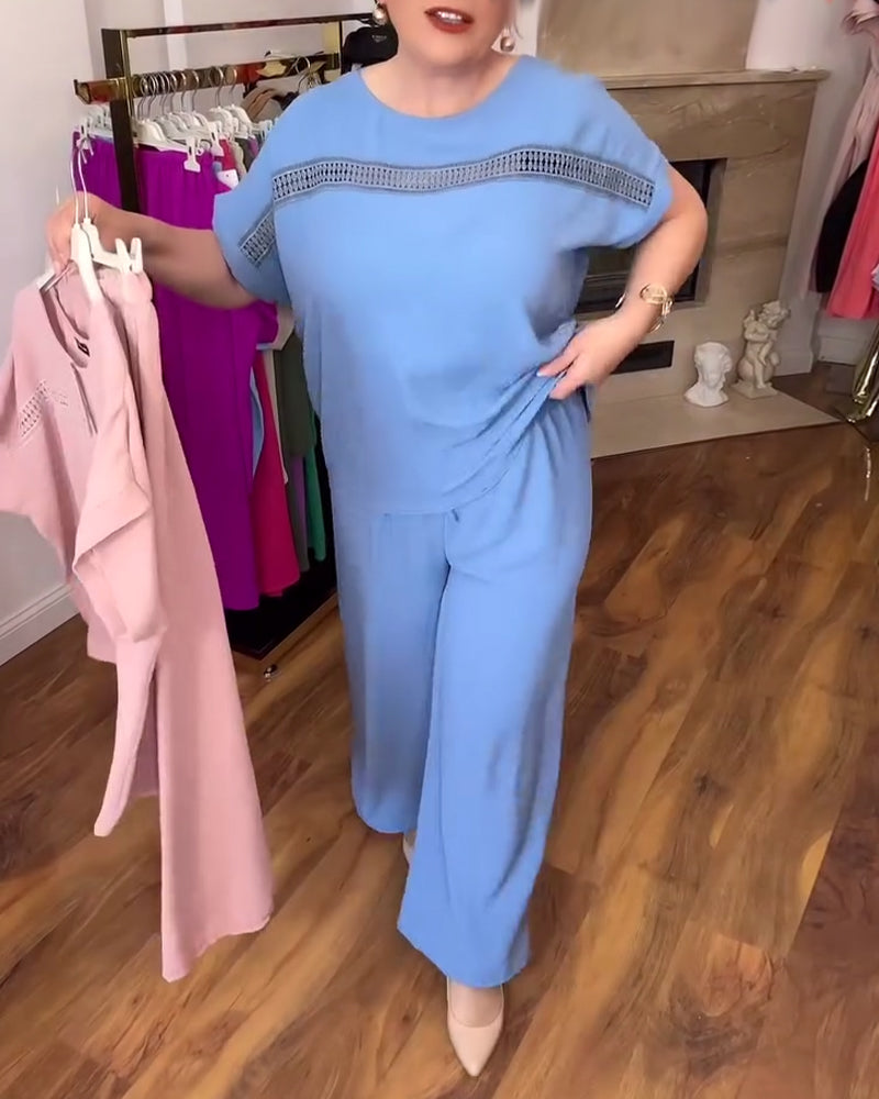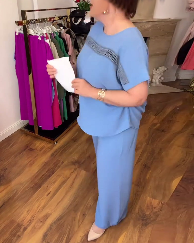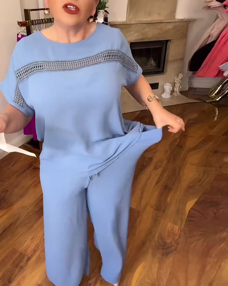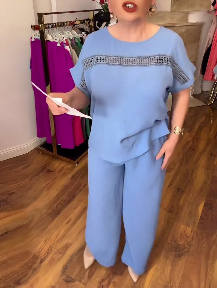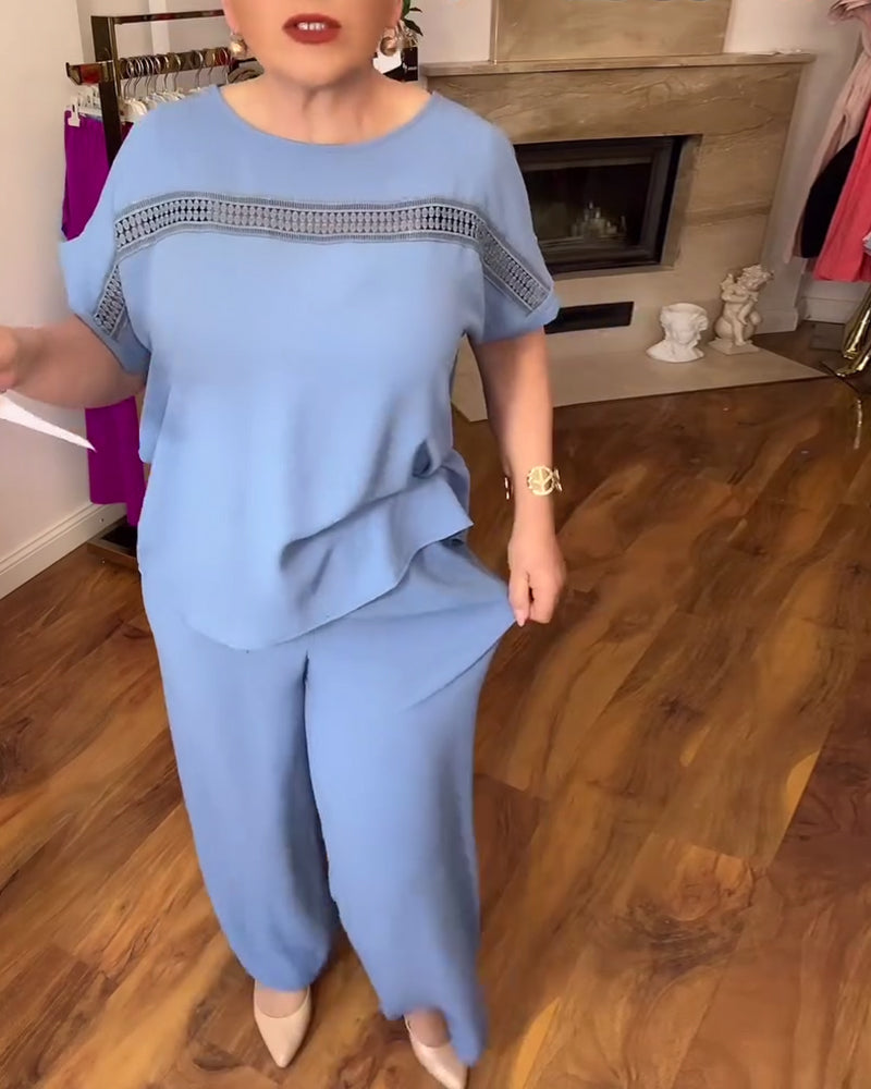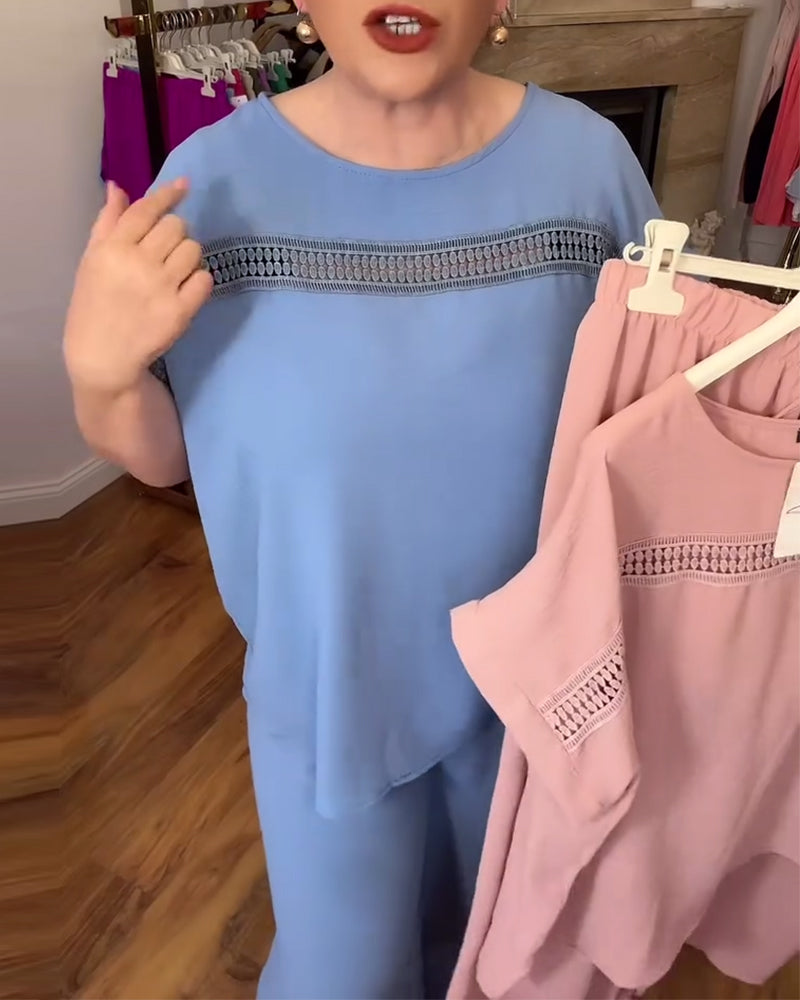 Lässiges Set mit Rüschenärmeln und Rundhalsausschnitt