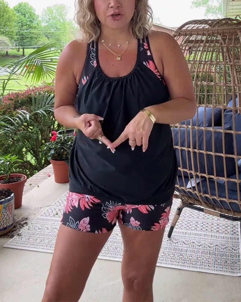 Ärmelloser zweiteiliger Badeanzug mit Kontrastdruck