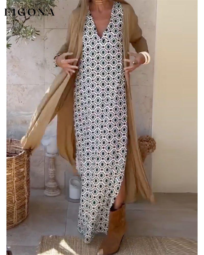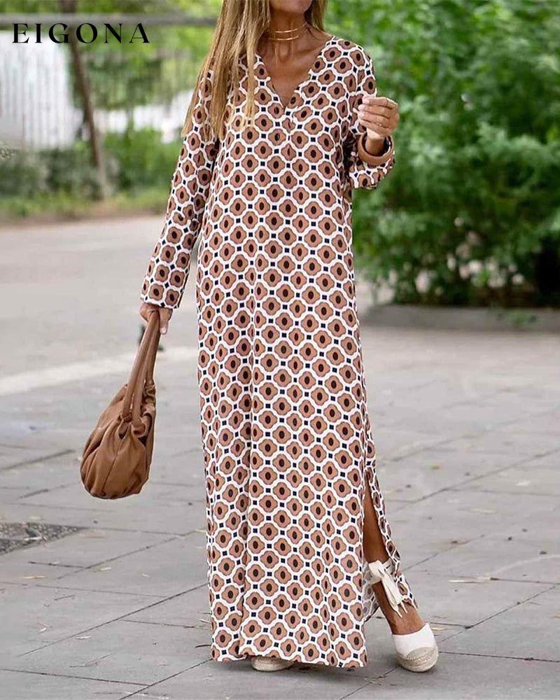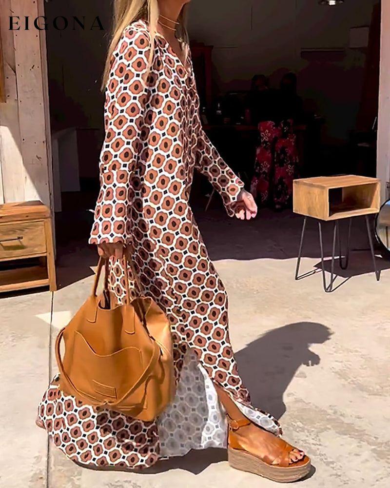 Langes Kleid mit Batik-Print und langen Ärmeln