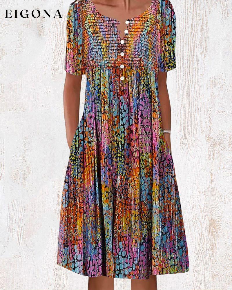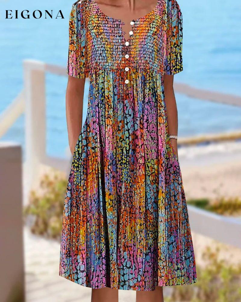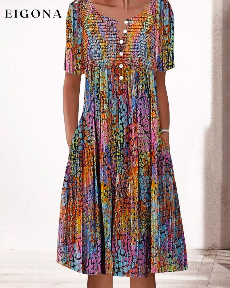 Buntes, kurzärmliges Kleid mit V-Ausschnitt