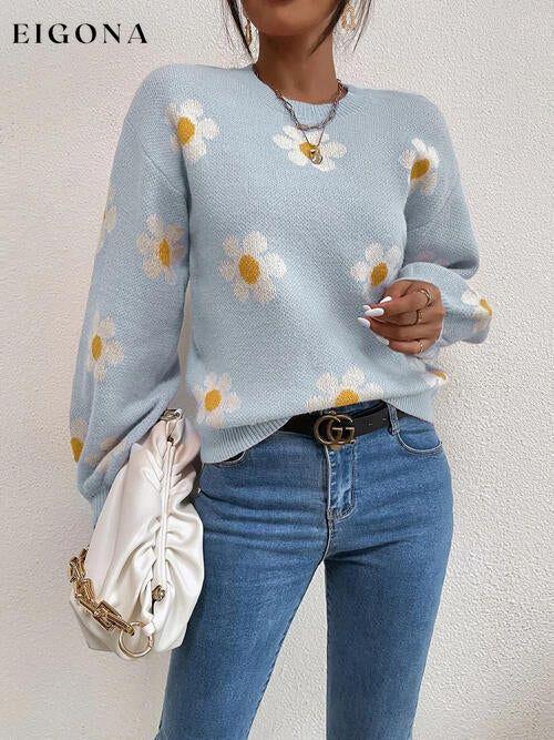 Blumenpullover mit Rundhalsausschnitt und Laternenärmeln