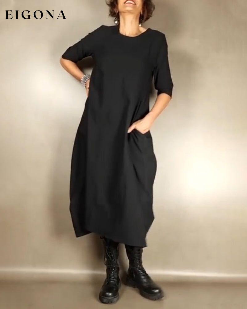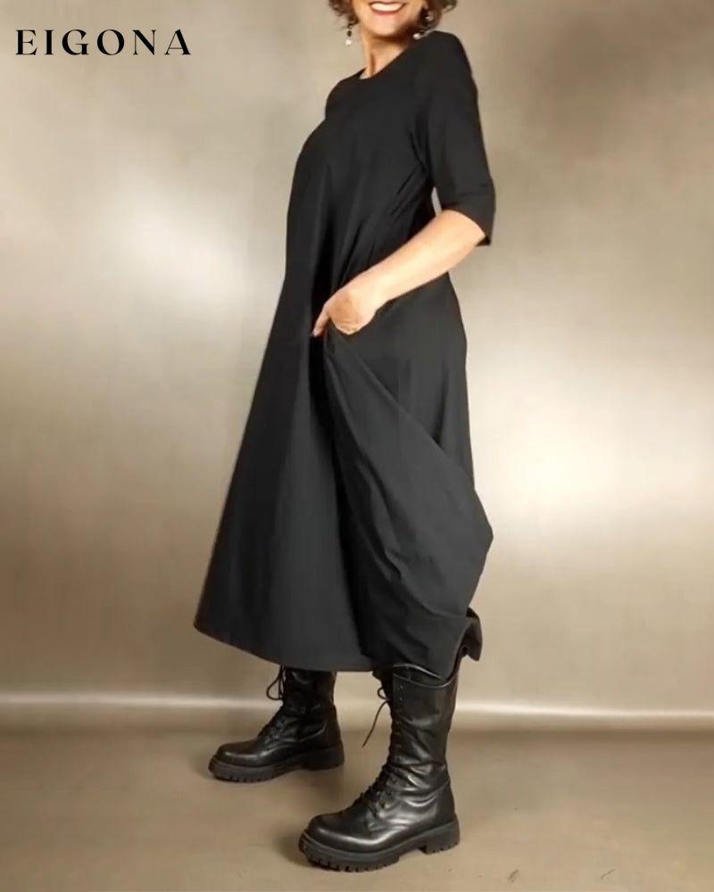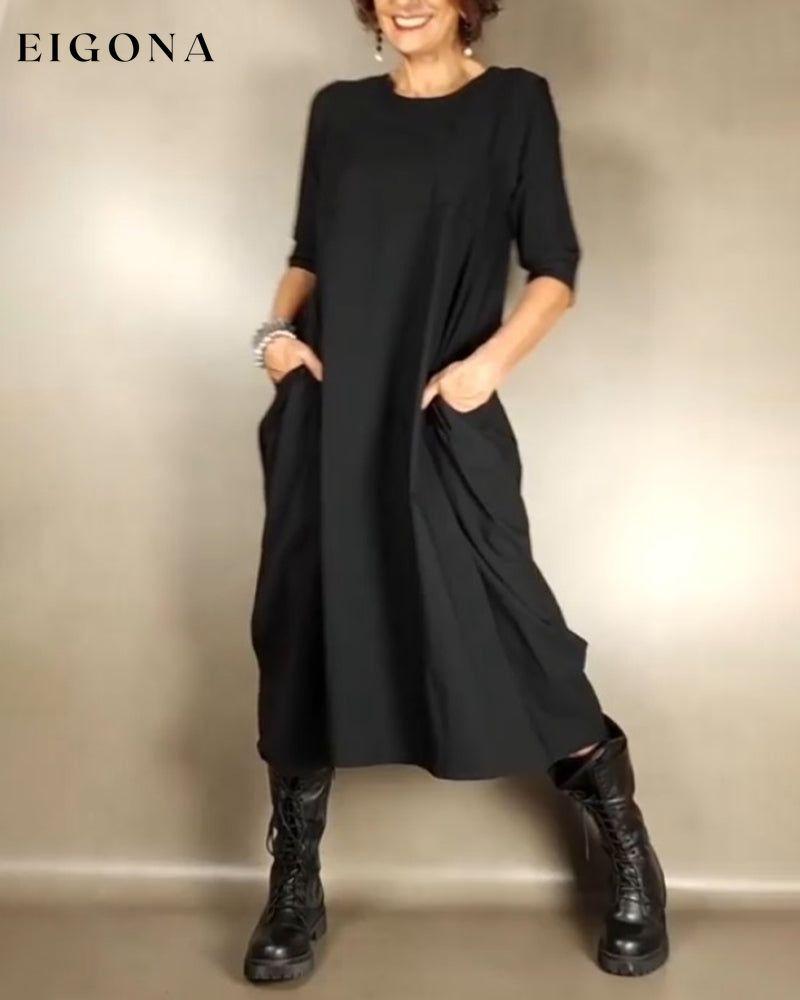 Lockeres A-Linien-Kleid mit Rundhalsausschnitt und Taschen