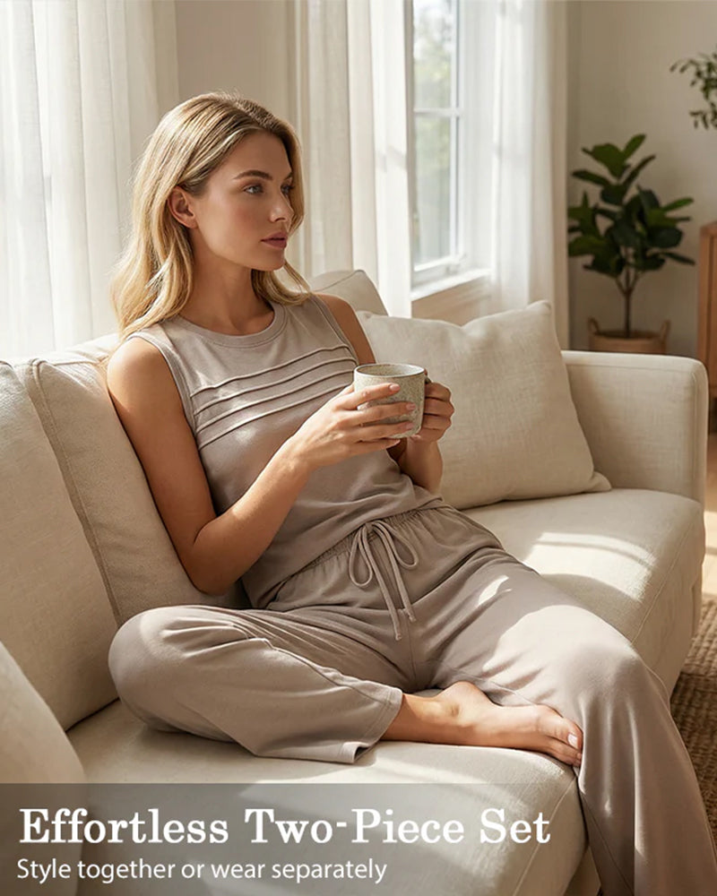 Package Includes: 1 x Women's Sleeveless Top & Drawstring Pants Set
