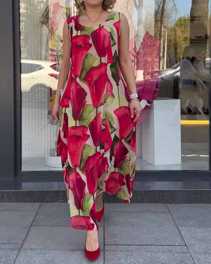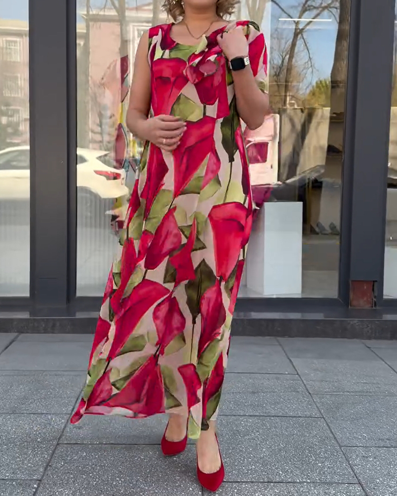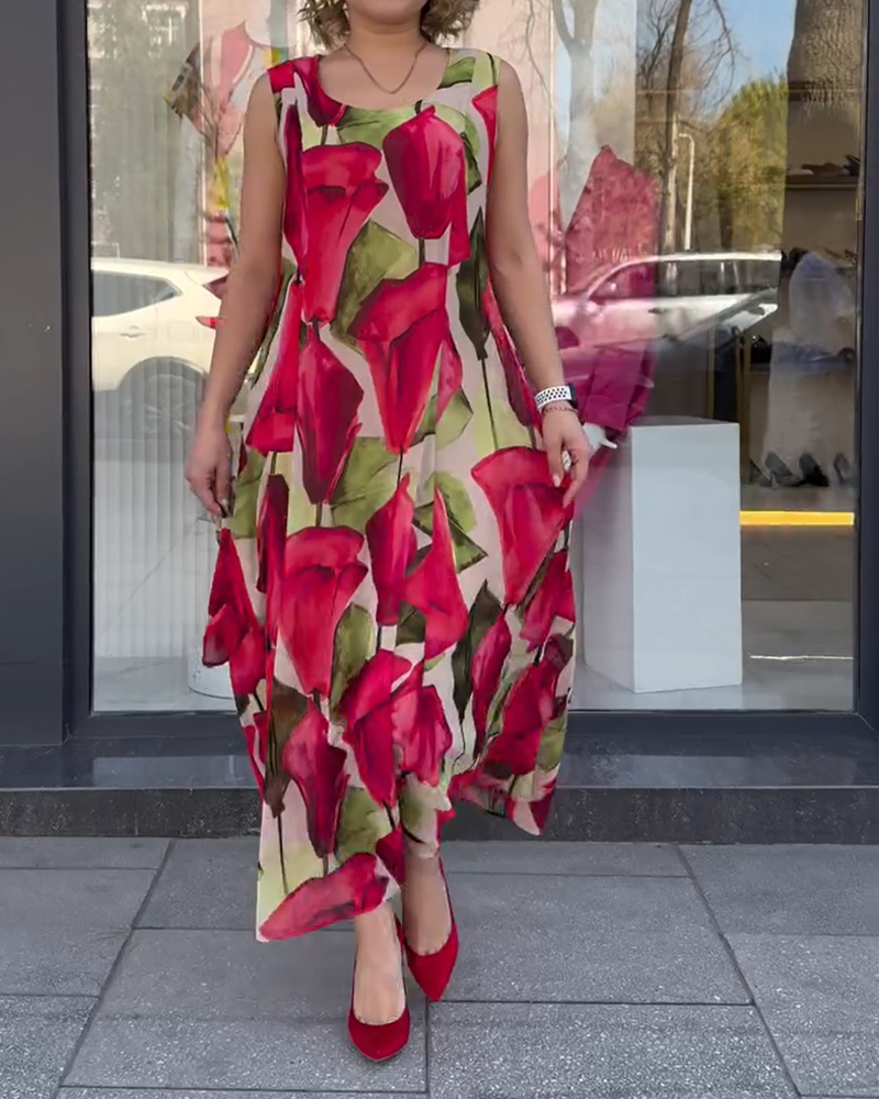 Ärmelloses, bedrucktes Kleid mit U-Ausschnitt