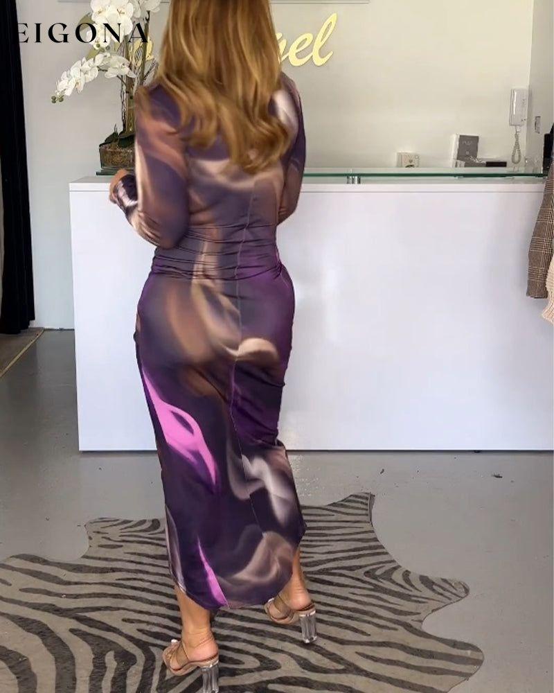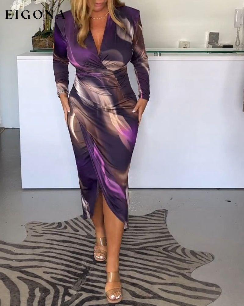 Langärmliges Schlitzkleid mit V-Ausschnitt