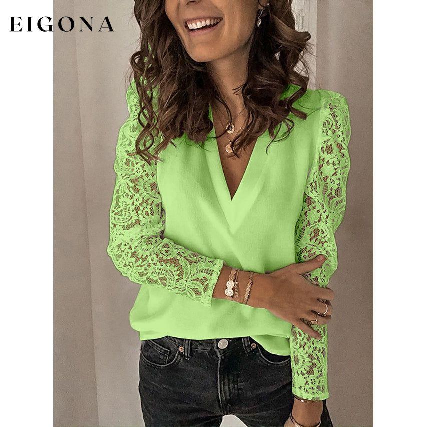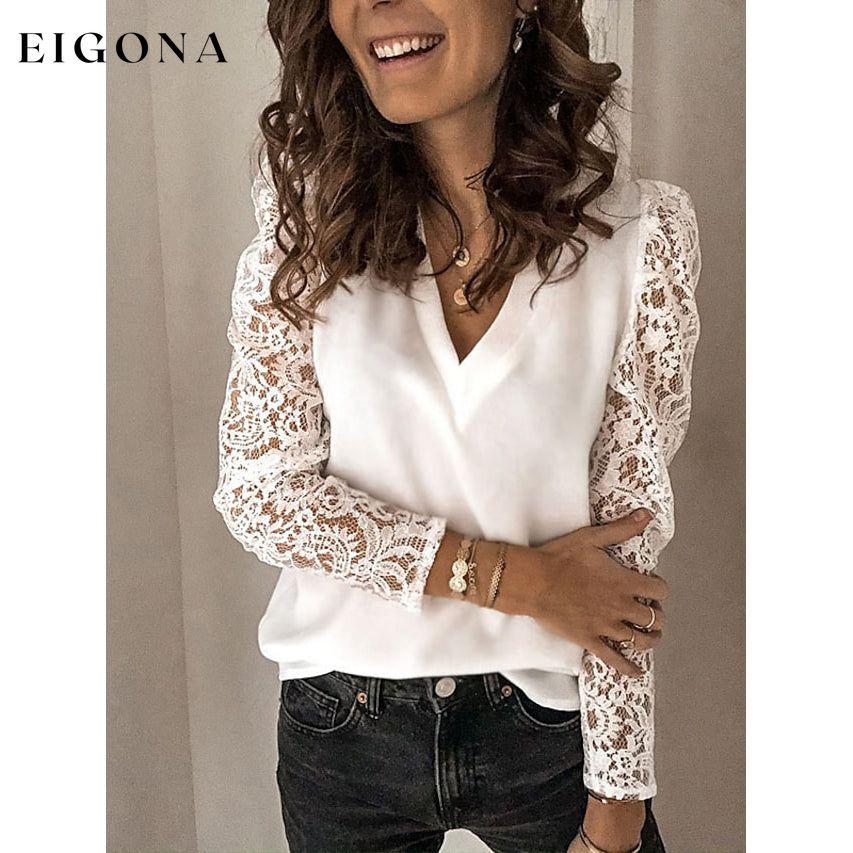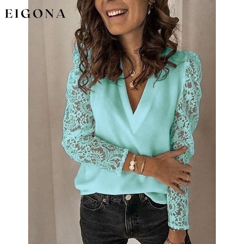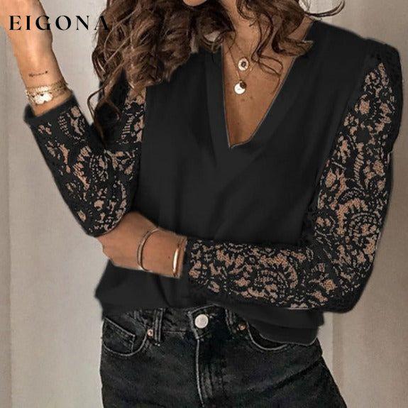 Langärmliges Damen-Top mit Spitzen-Patchwork und V-Ausschnitt