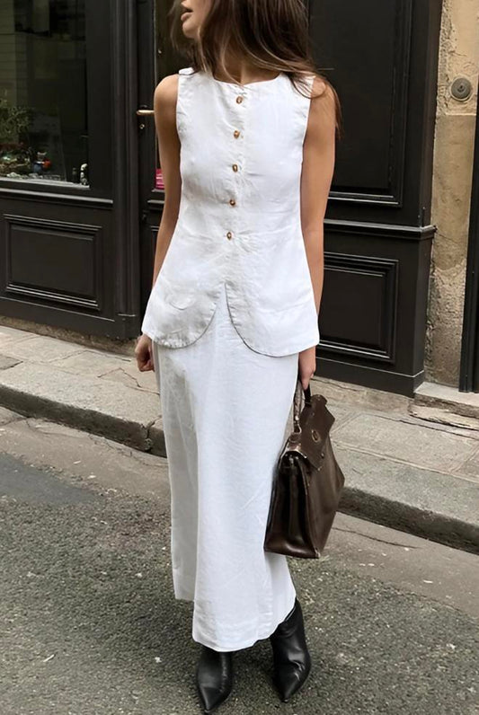 Conjunto de top cropped sem mangas e calça de perna larga – Roupas femininas