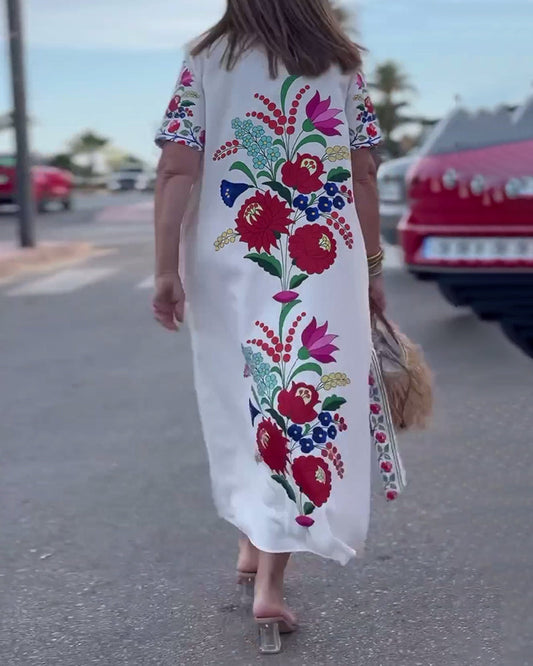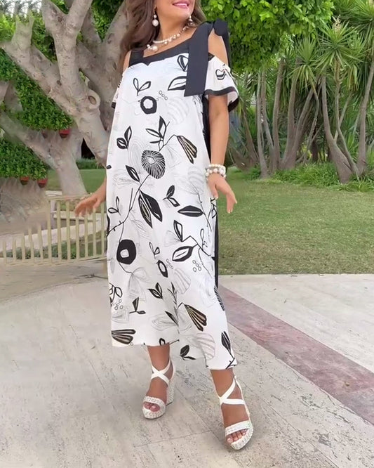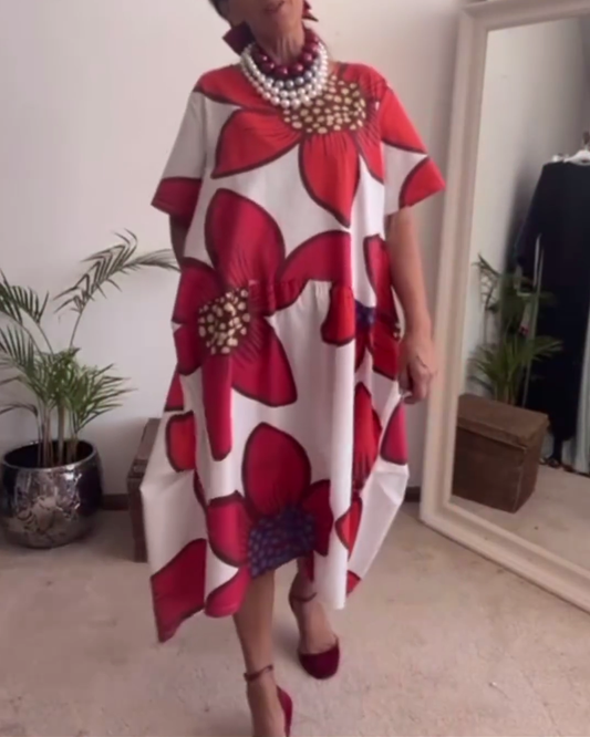 Vestido solto casual de manga curta com estampa floral