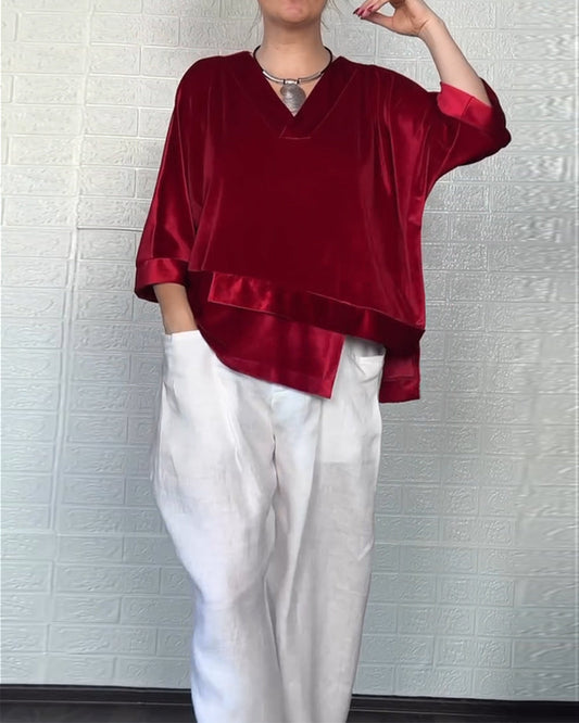 Asymmetrisches Samtoberteil mit V-Ausschnitt