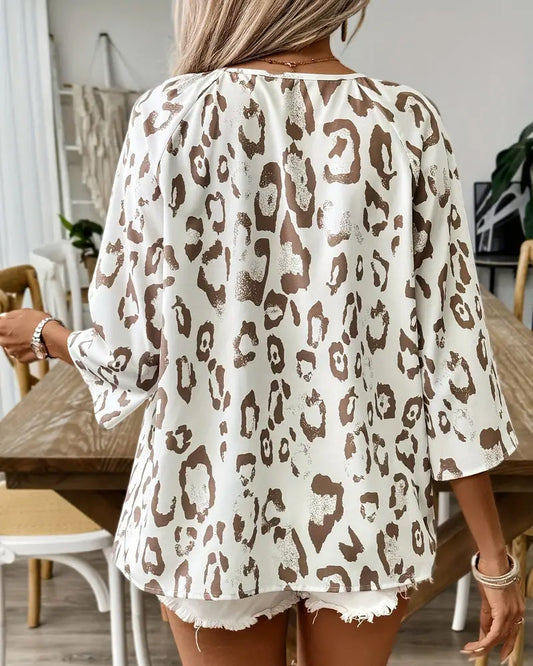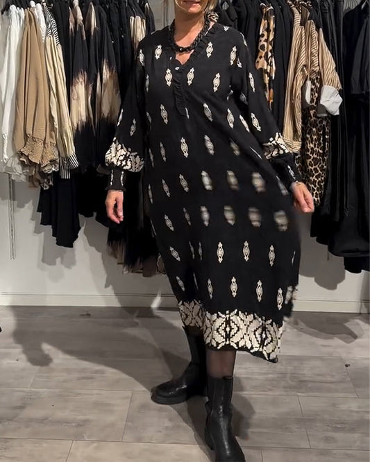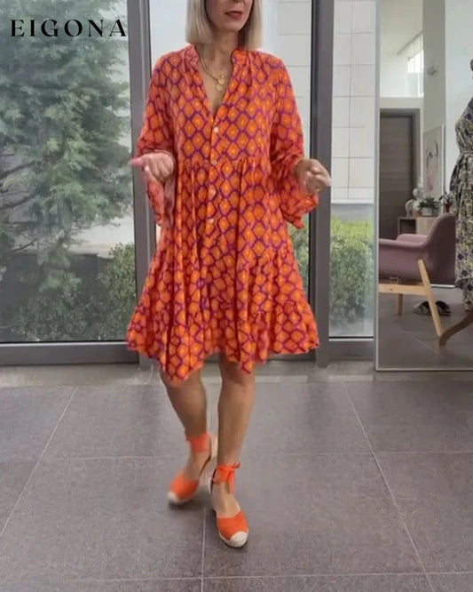 Lockeres Kleid mit V-Ausschnitt und modischem Aufdruck in großer Größe