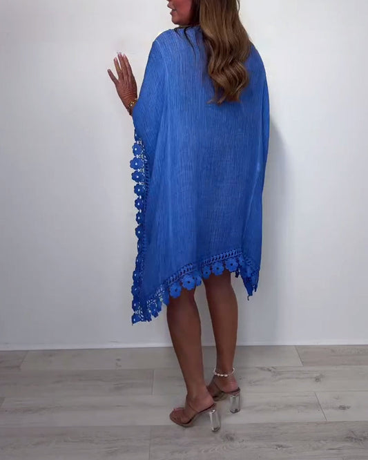 Einfarbiges Oberteil mit V-Ausschnitt und Fledermausärmeln