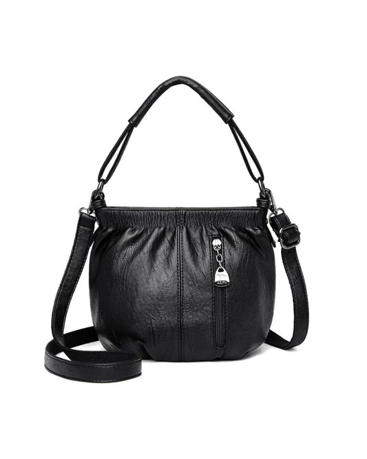 Casual Pleated Bucket Soft Leather Handbag