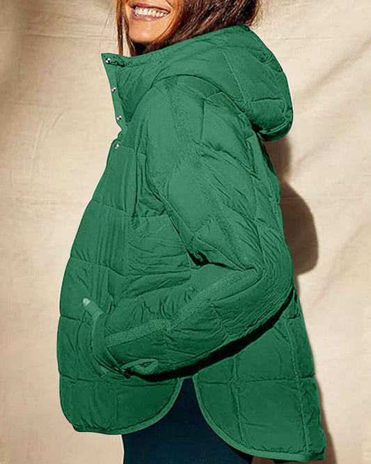 Jaqueta casual acolchoada com capuz e bolso de cor sólida