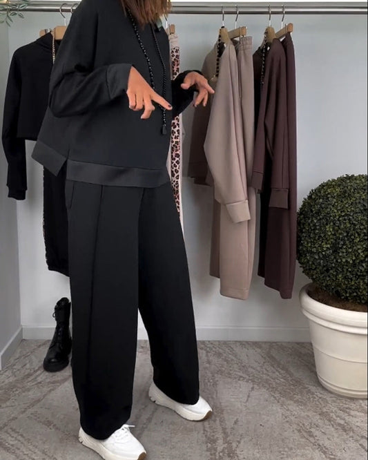 Lässiges, einfarbiges Sweatshirt-Hosen-Set mit Rundhalsausschnitt