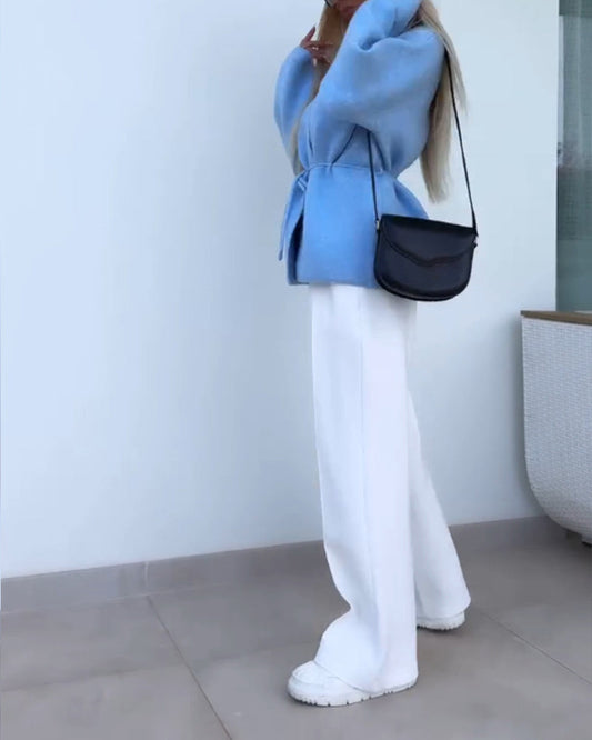 Lässige Strickjacke in Volltonfarbe mit Laternenärmeln