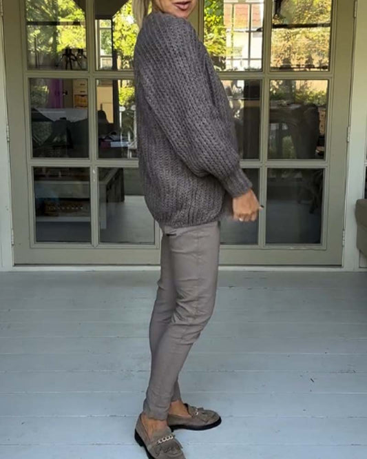 Lässiger, einfarbiger, langärmeliger, lockerer Cardigan
