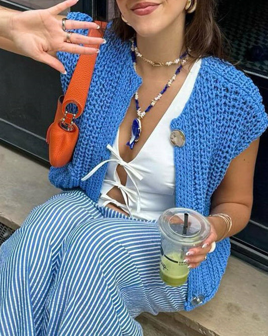 Ärmellose, einfarbige Strickjacke mit drei Knöpfen