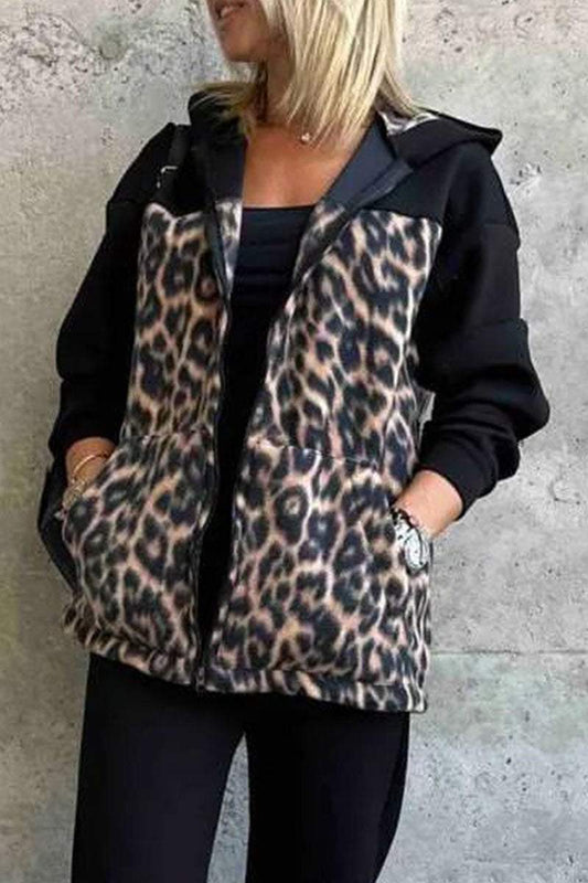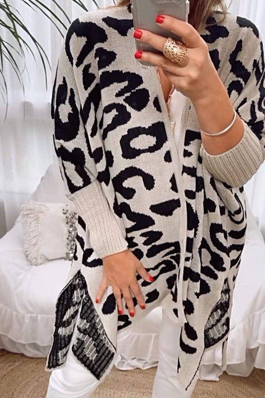 Langärmliger Cardigan mit Reißverschluss im Leoparden- und Zebra-Print