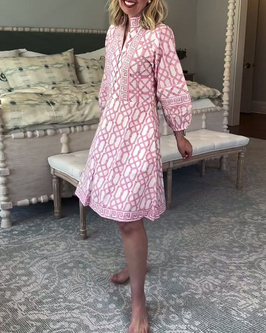Loses Kleid mit Laternenärmeln, Stehkragen und Print