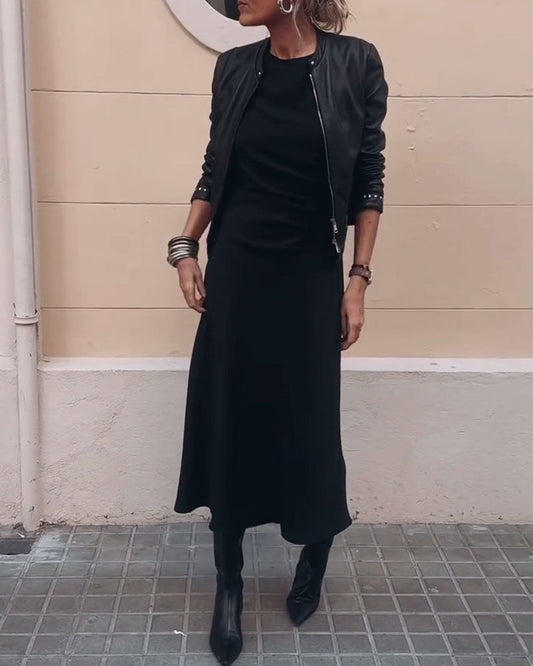Fake Zweiteiliges, doppellagiges, lockeres Kurzarmkleid