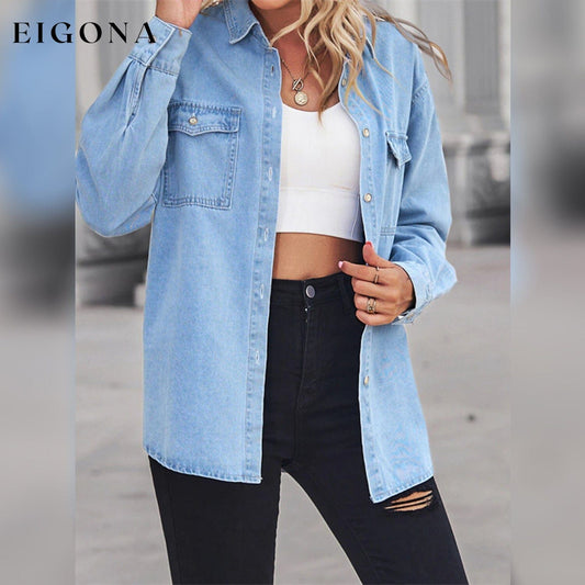 Casaco Feminino Shacket Jaqueta Manga Longa Cor Sólida Oversized