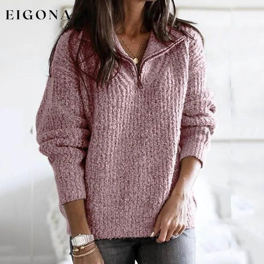 Pulôver feminino suéter com zíper cor sólida básico casual manga comprida suéter cardigans