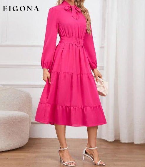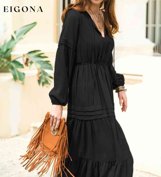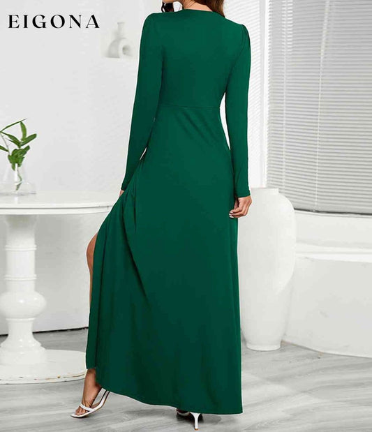 Vestido maxi sexy de manga comprida com detalhe de gravata