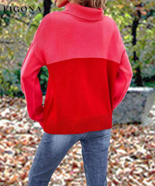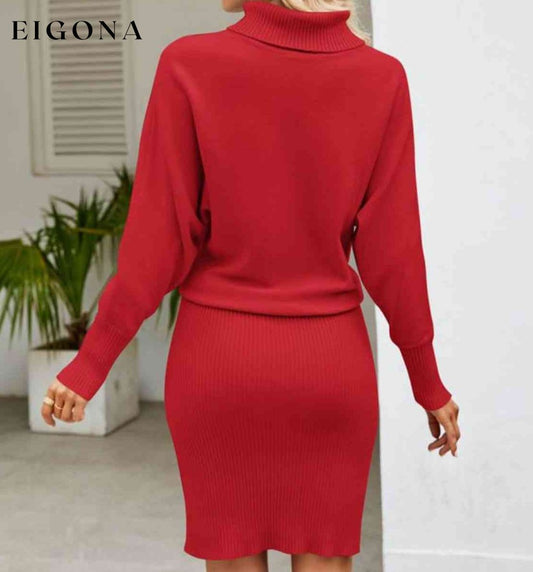 Vestido suéter com gola alta e manga comprida com ombros caídos