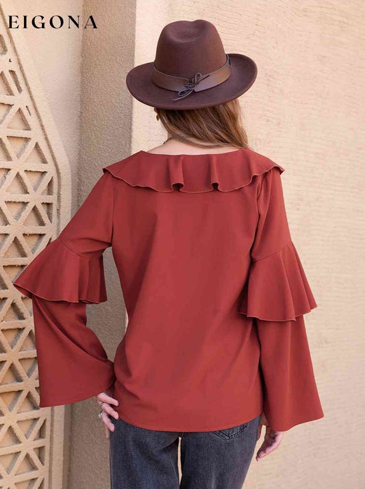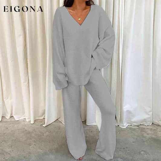Conjunto de top de manga comprida com decote em V e calça comprida