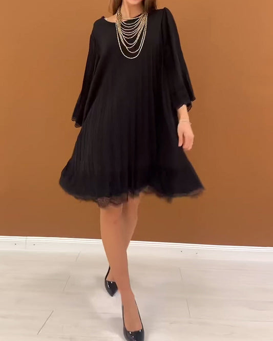 Rundhals-Langarm-Patchwork-Kleid aus Spitze