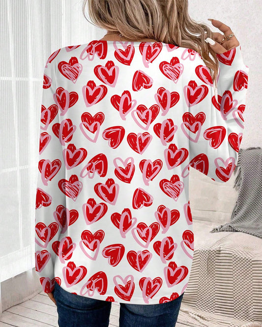 Langärmliges Top mit Rundhalsausschnitt und Herzmuster