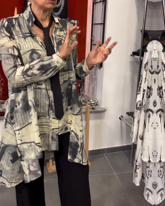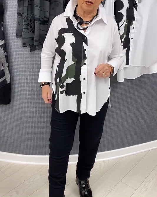 Lässige, bedruckte Bluse mit langen Ärmeln und Knopfleiste