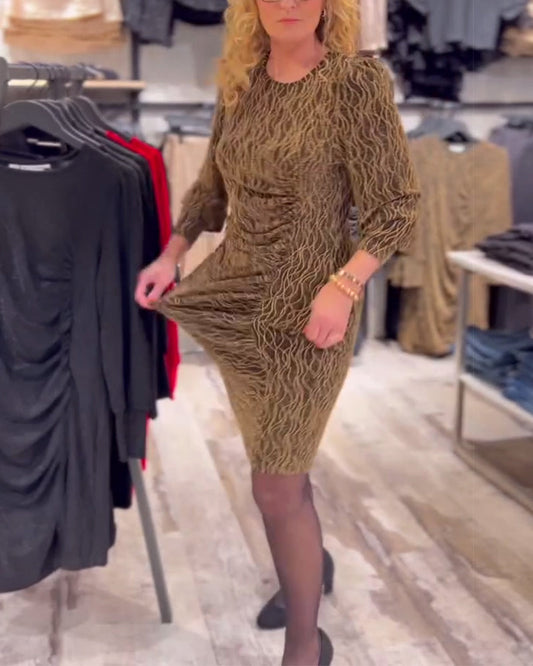 Temperamentvolles, schmal geschnittenes, bedrucktes Langarmkleid