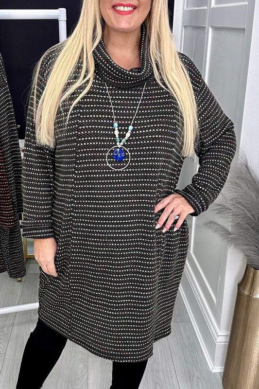 Lässiges All-Match-Kleid mit hohem Kragen und langen Ärmeln für Damen