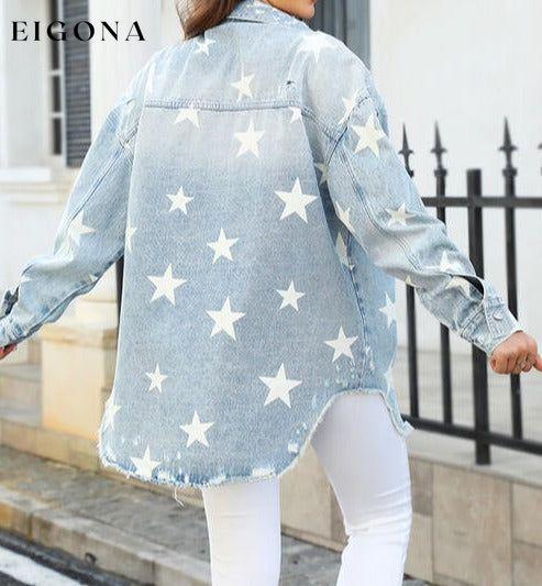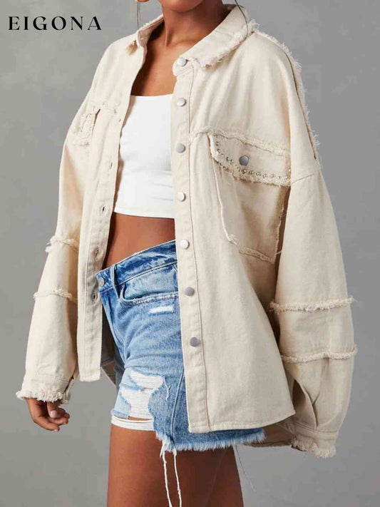Jaqueta jeans de manga comprida com bainha crua e botão
