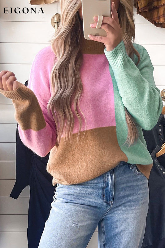 Suéter multicolorido colorblock com gola simulada e acabamento canelado