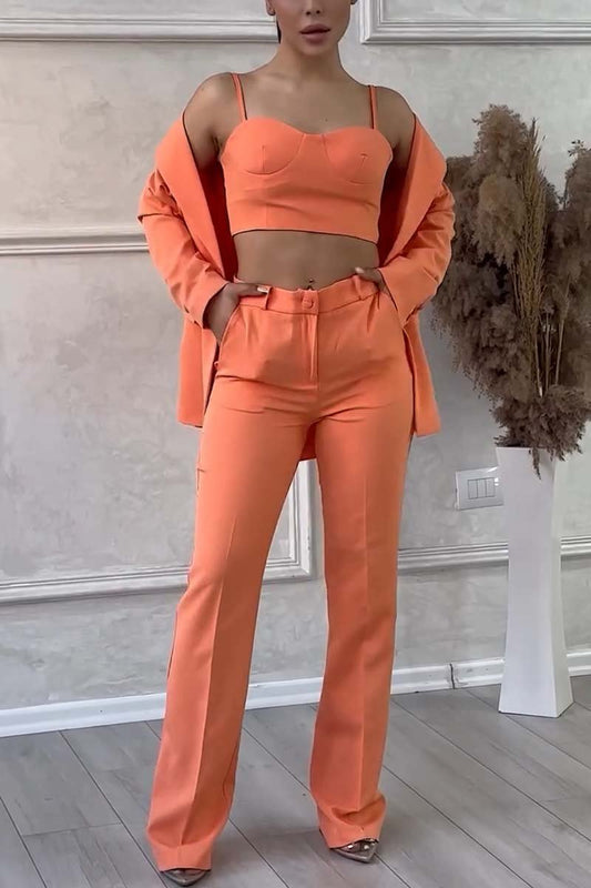 Modischer dreiteiliger Anzug in Volltonfarbe für Damen