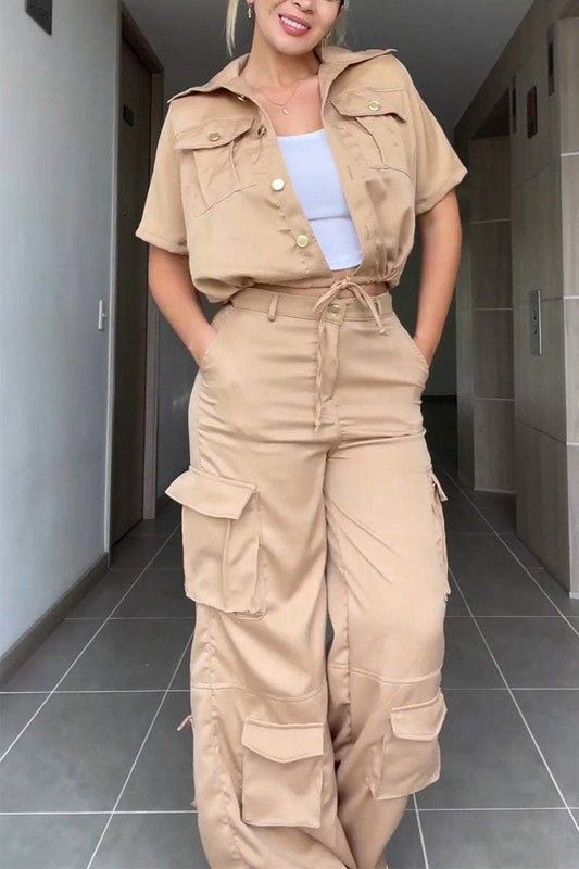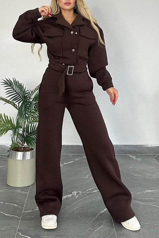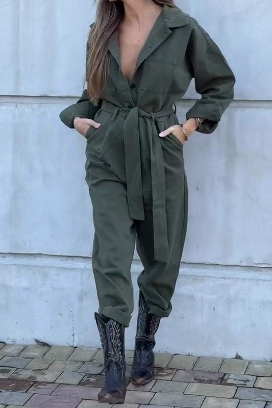 Damen-Overall mit Revers und langen Ärmeln, Arbeitskleidung, lässig