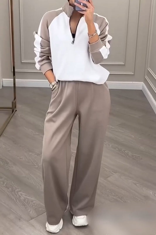 Lässiger Sportanzug mit Reißverschlussjacke und weitem Bein für Damen