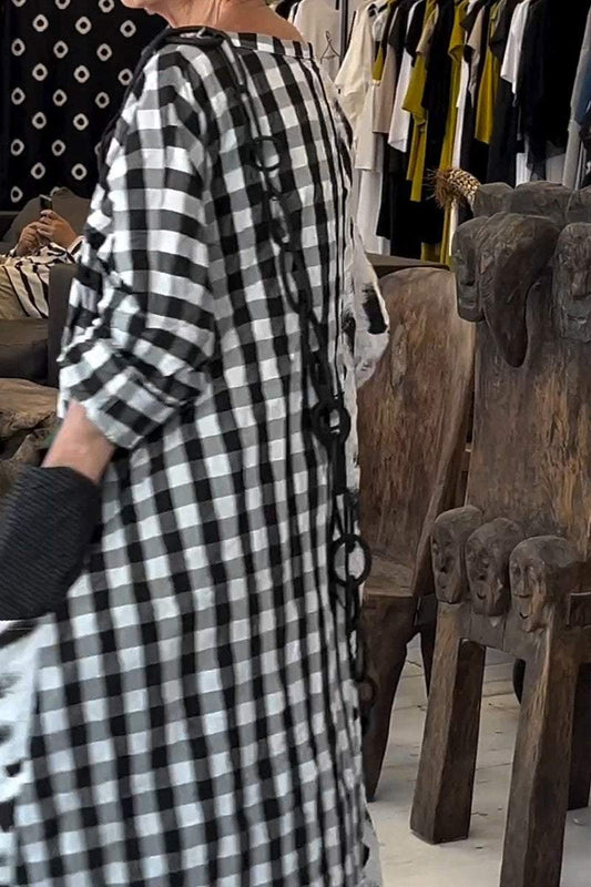 Lässiges, lockeres Kleid mit Rundhalsausschnitt und Nähten für Damen